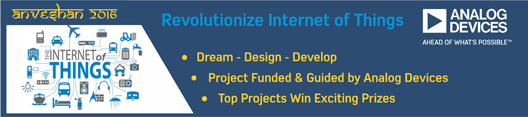 Well, my new semester kicked off with good news. I got selected to Round 1 of Anveshan IoT fellowship 2016 organized by Analog devices India. Its a biennial competition organized by Analog devices giving an opportunity for the Indian Engineering students, alumni, startups and makers, hobbyists and would-be-entrepreneurs to showcase their innovation, learn, design and architect a complete innovative product or an ioT service in a low risk setting with all the help from Analog Devices specialists and mentors, with the creation, funded and guided by Analog Devices for a full-fledged development duration, up to 9 months.